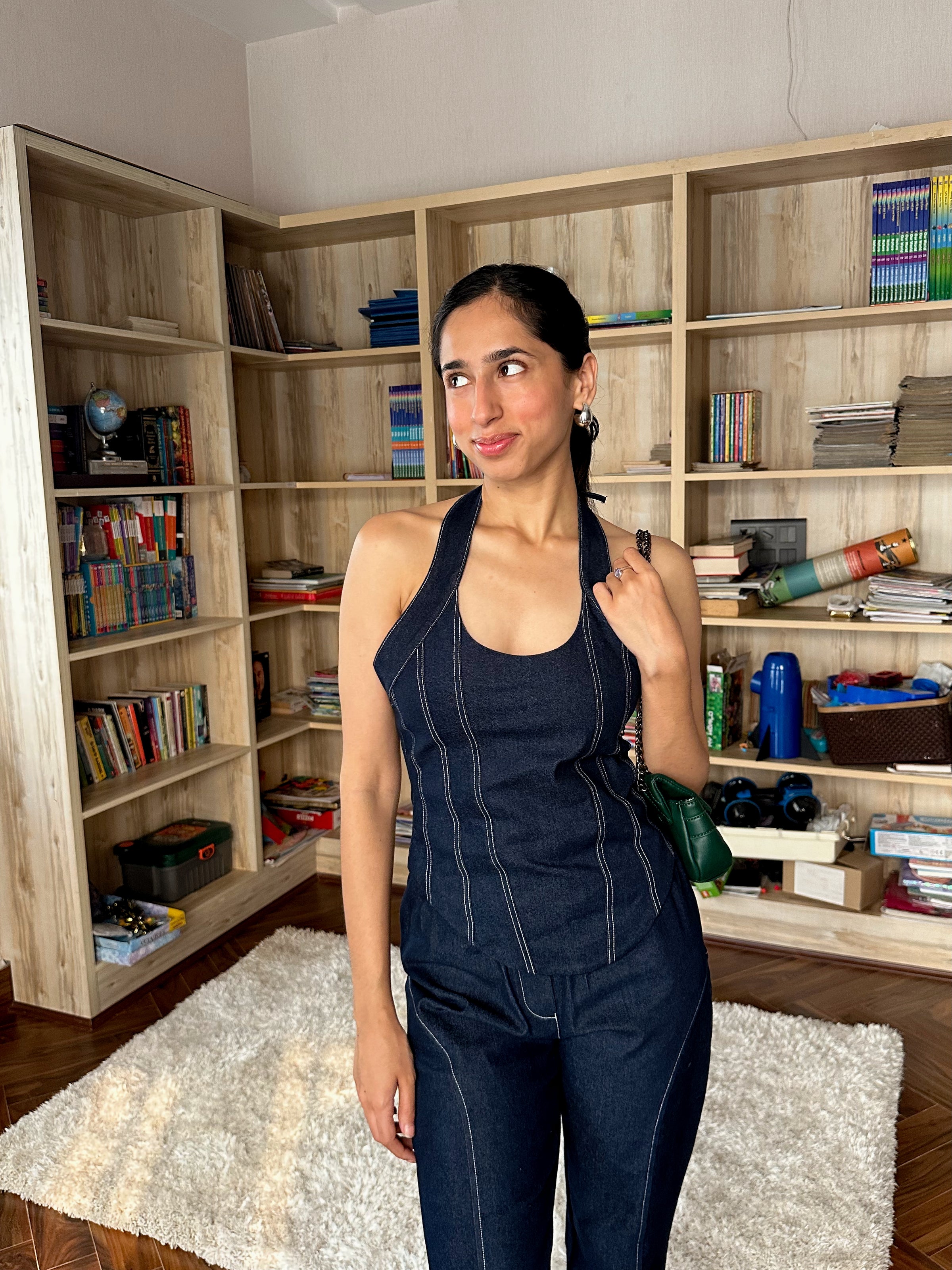 Dion is the perfect denim staple your wardrobe needs. Pieces that can be effortlessly styled. The halter neck top sculpts the body and flatters you from every angle. The trouser and top make a great casual fit keeping you stylish and comfortable at the same time.
