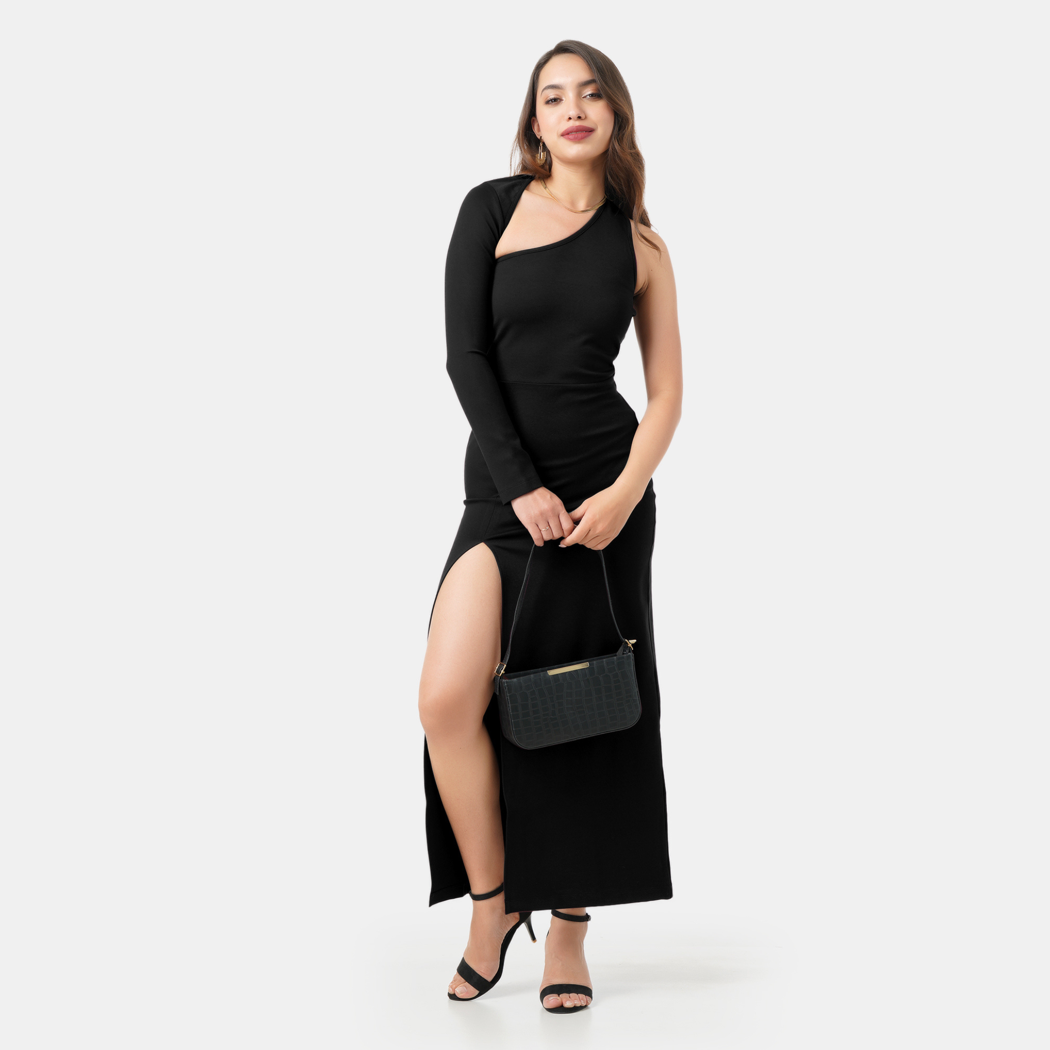 Stacy is the epitome of classic style. This exquisite dress is expertly crafted and combines the opulence of fine ribcord fabric with the charm of an asymmetric sleeve design. Stacy exudes refinement and confidence, making her ideal for romantic dinners and movie outings. This gorgeous piece will effortlessly elevate your sense of style.